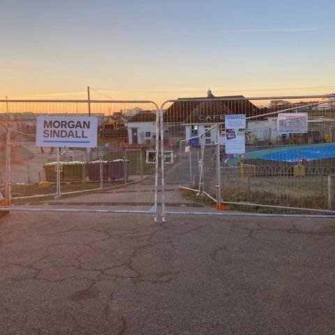 The north-south path and the eastern entrance to the Big Beach Cafe and the Promenade from Kingsway has been closed off in order for a shallower sloping path into the Lagoon to be built, for the existing toilets to be improved/be more accessible and for the cafe to have a storage extension added.