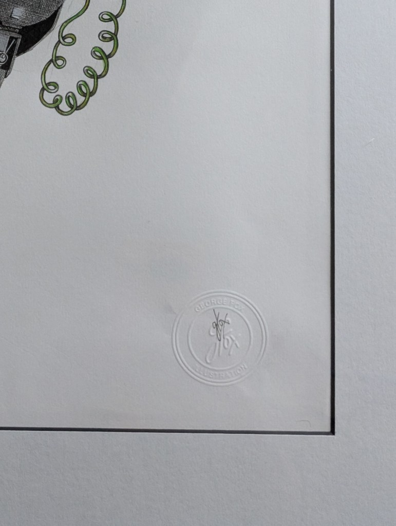 George Fox is an inventor and storyteller whose innovative artwork delves deep into the mechanics of how things work, exploring not just the obvious scenarios but also imagining a world without limitations. With exceptional imagination and intricate detail, his illustrations are both complex and beautiful. George is firmly established as a Brighton & Hove artist and has worked on local collaborations with a number of local businesses and venues. His work can be found at some of the largest venues around the world. George was a commissioned artist for the 2024 Olympic Games.