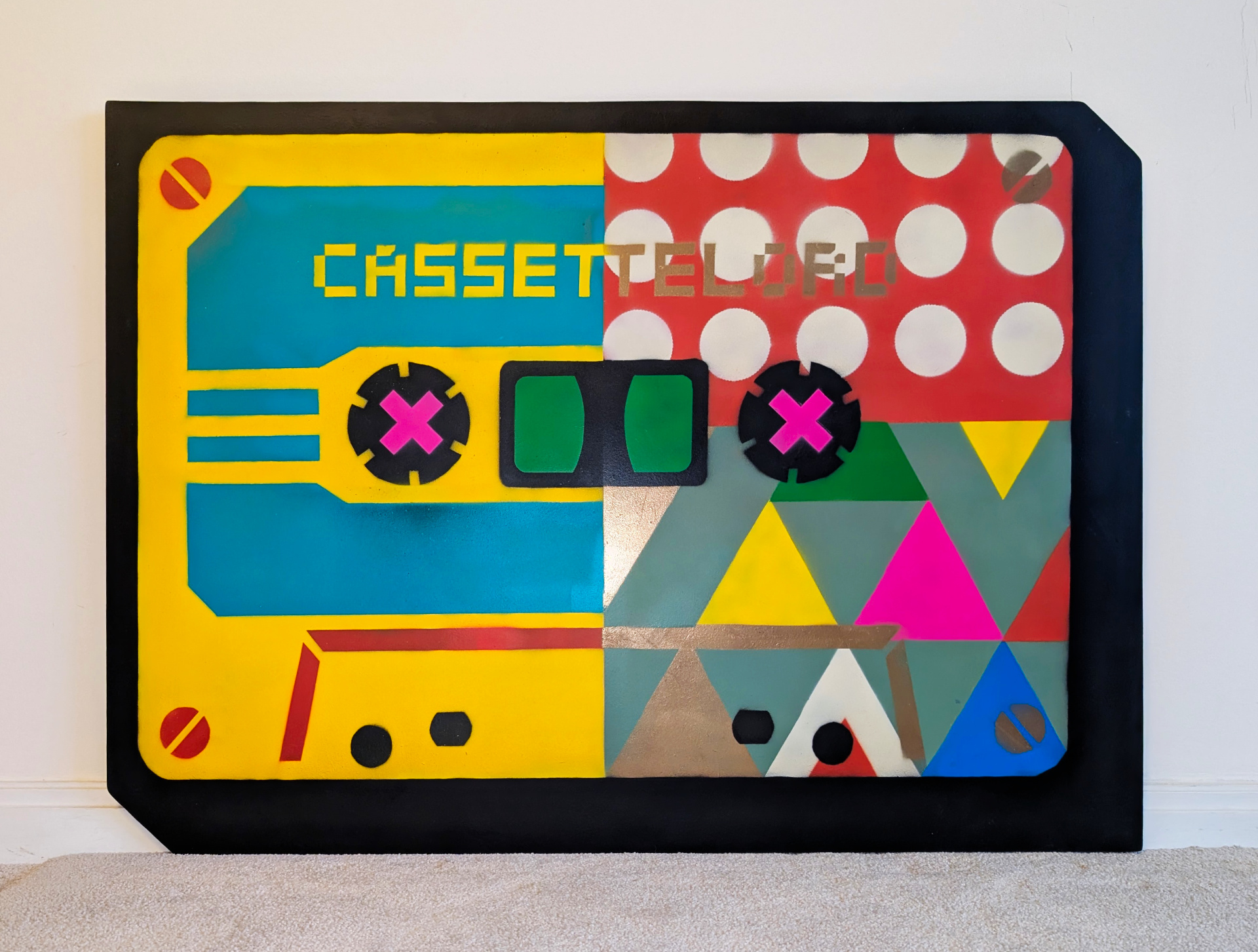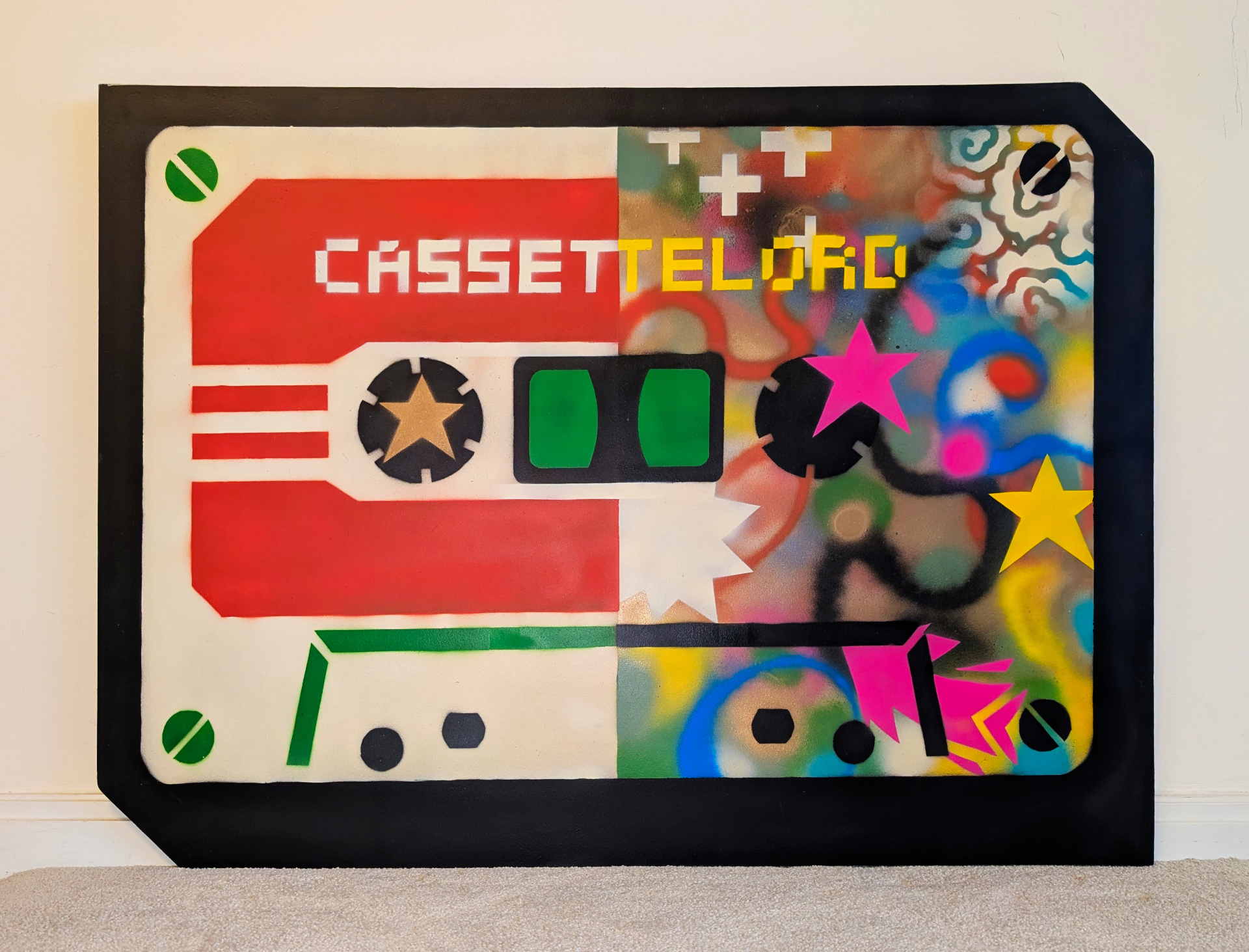 Cassette Lord, AKA Martin Middleton, is a Brighton based street artist and the first to paint his designs onto the green media cabinets of Brighton. Best known for his large cassette visual tag, he seeks to introduce retro pop art and a sense of the surreal into our everyday urban environment. Cassette Lord hopes to subvert media propaganda by using the tools and ubiquitous weapons of advertising against itself. He is inspired by the work of Claes Oldenburg and Andy Warhol as well as Japanese animation, retro design and graffiti art.