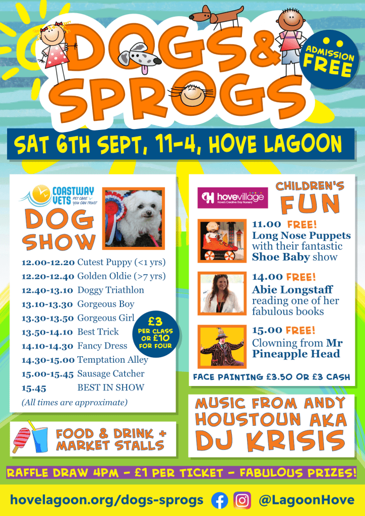 A family mini-festival at the western end of Hove Lagoon. Co-hosted by Coastway Vets, Hove Village Day Nursery, and Friends of Hove Lagoon, with sponsorship from Hamptons Estate Agents